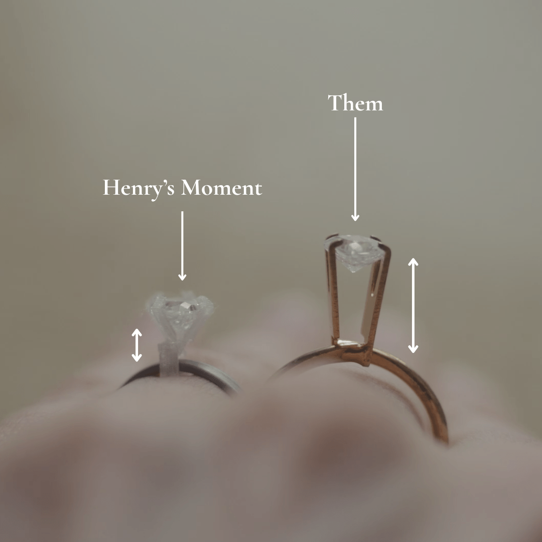Henry’s Moment lets you try gold or silver tones, multiple shapes, and a range of 'carat' sizes, all in your own time, on your own hand.